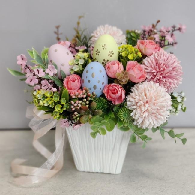 Описание Композиция из искусственных цветов на праздник Пасха.