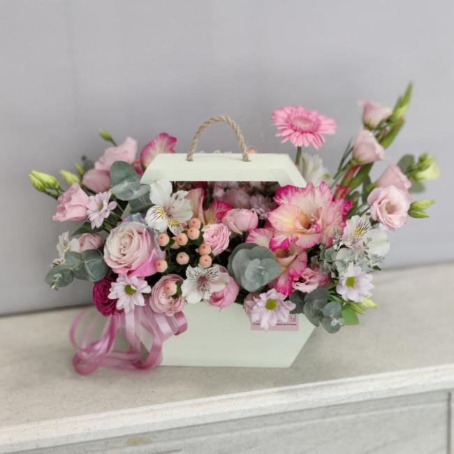Композиция цветов #77 в деревянной коробке «Арабелла»