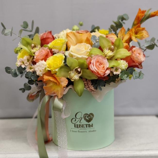 Композиция цветов #81 в шляпной коробке «Илэрия»