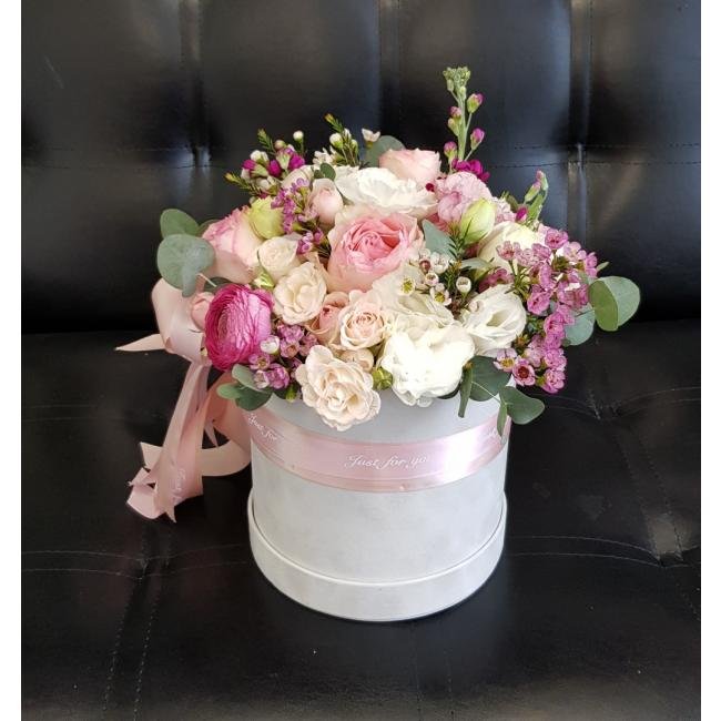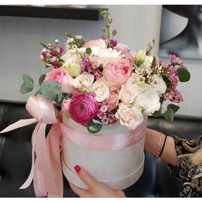 Композиция цветов #8 в шляпной коробке «Орфея»