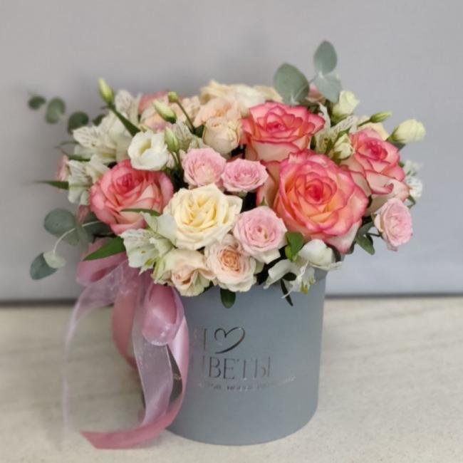 Композиция цветов #28 в шляпной коробке «Джейн»