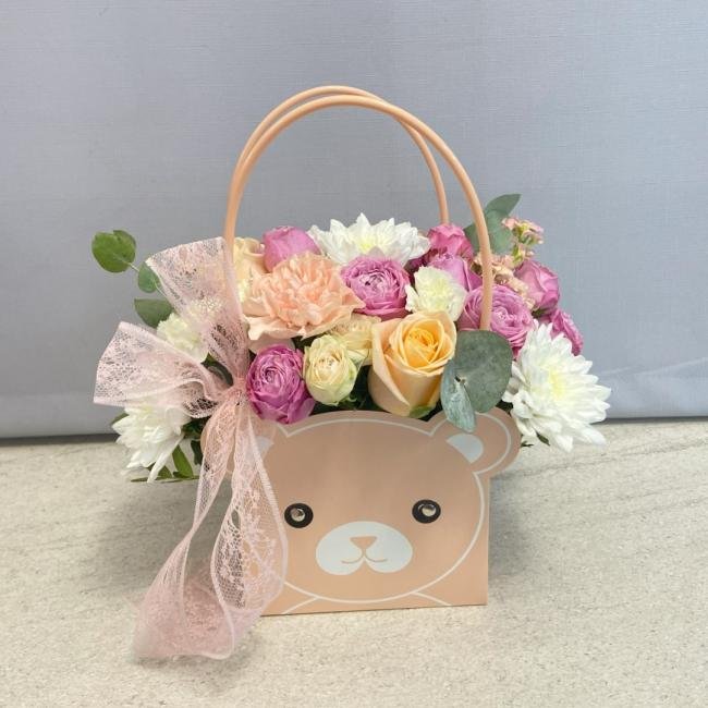 Описание В составе композиции: одноголовая роза, пионовидная роза, хризантема, диантус, эвкалипт.