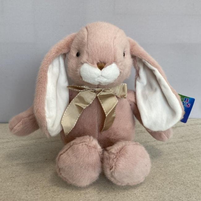 Зайка с длинными ушами с бантом розовый