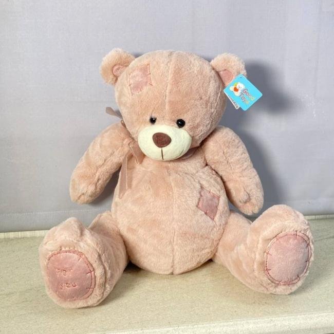 Медведь плюшевый с заплаткой "пыльно-розовый" H37