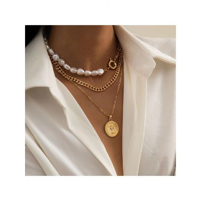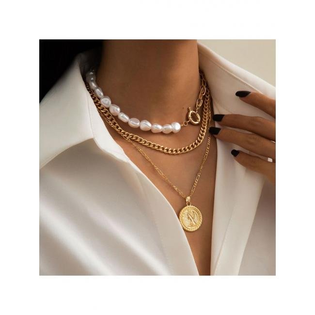 Описание Материал: брасс - сплав меди и цинка (без никеля), искусственный жемчуг, барочный жемчуг. Размер подвески: 2,8 x 2,4 см. Длина: 34 + 7 см. В наборе 3 колье. Максимальная длина колье: 45 + 7 см. Изделие гипоаллергенно. Масса: 42 гр.